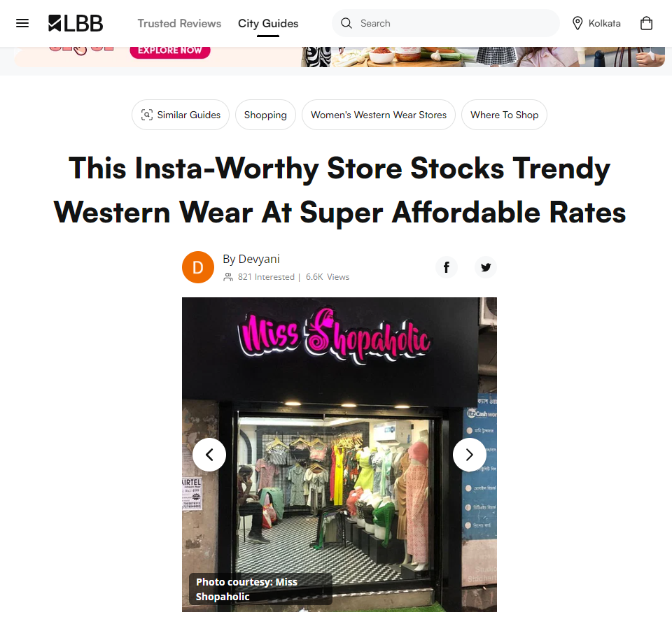 Located opposite Nick Nack in Bhawanipore, Miss Shopaholic is this cute Insta-worthy store that stocks super stylish and trendy outfits and a limited but impressive range of accessories at really affordable rates. Itโs like a mini version of a Bangkok shopping market where everything is fashionable, trendy, and reasonable.