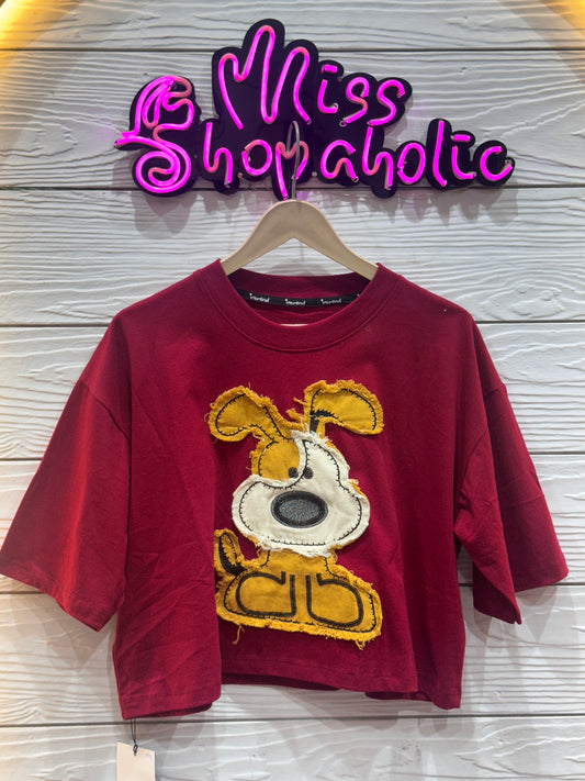 Doggo Patchwork Oversized Crop T-shirt
