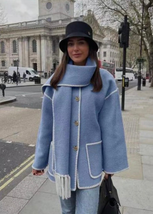 Faux Suede Oversized Coat with Scarf