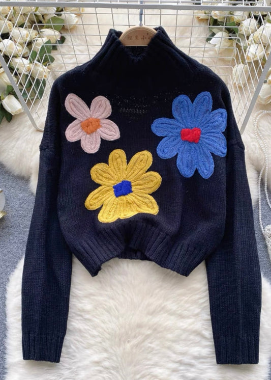 Cute Floral High Neck Sweatshirt