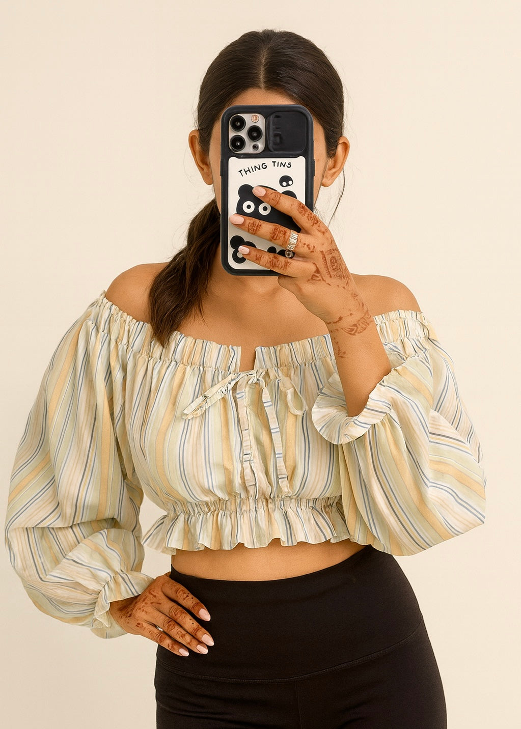 Plus Size Striped Off Shoulder Top