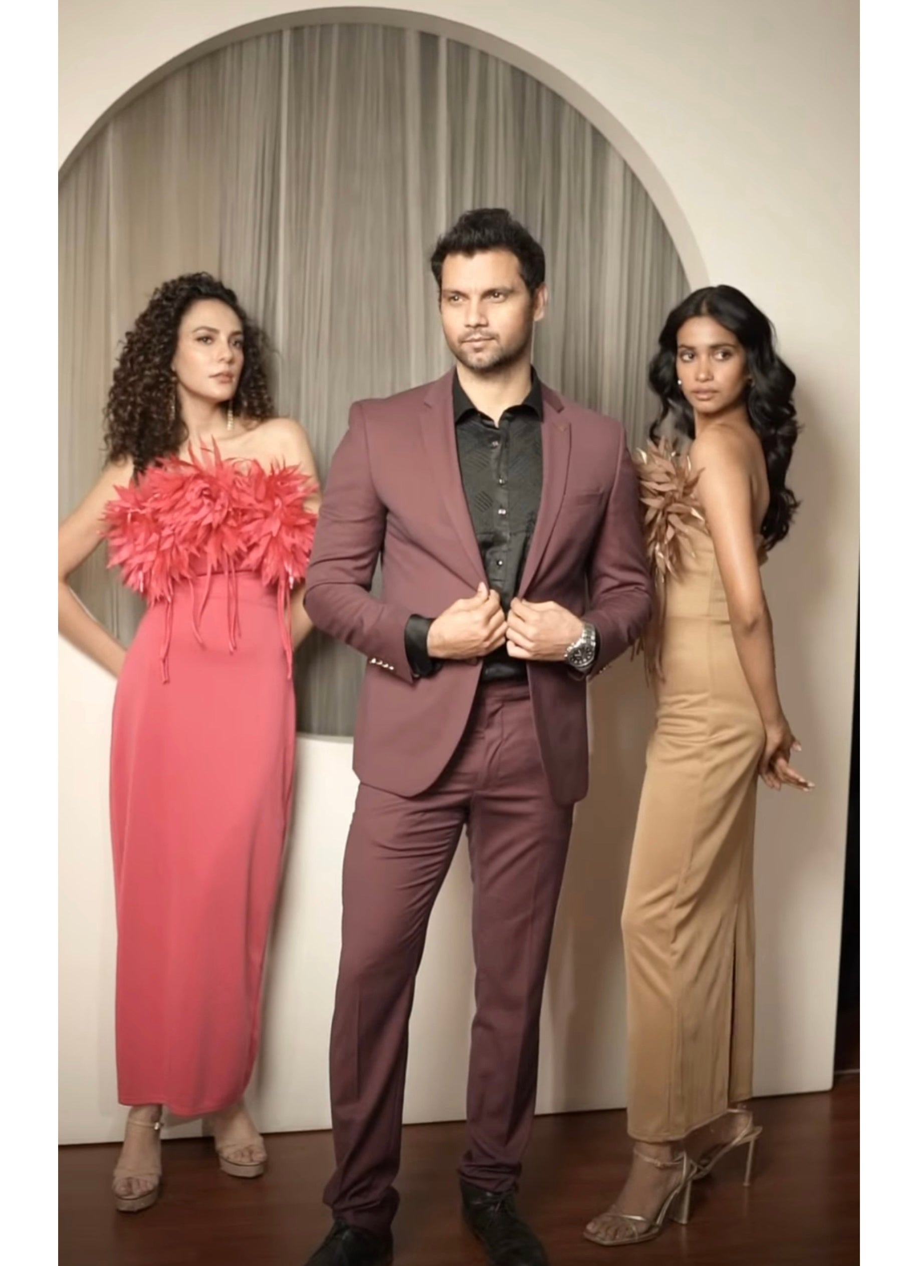 Long Bodycon Dress with Fur Neckline