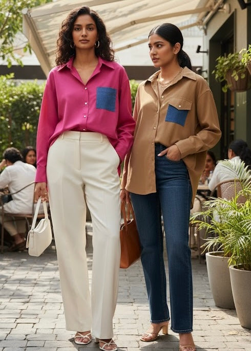Plain Shirt with Denim Pocket